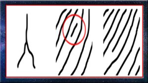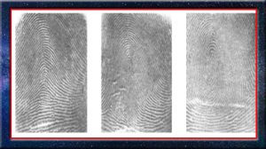 شکل 14: الگوی خطوط اثرانگشت: سمت چپ: نوع کمانی- سمت راست: نوع گردابی- وسط: نوع حلقوی